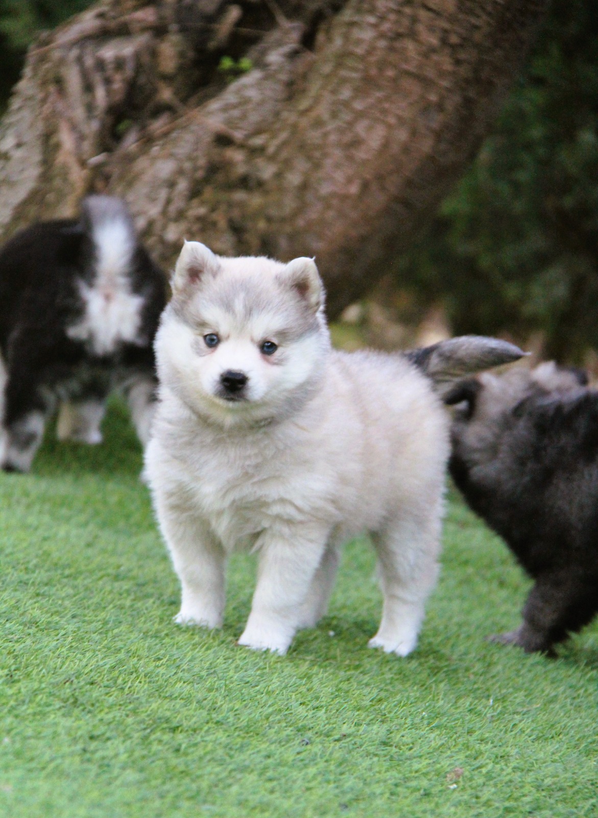 El Pomsky es una raza híbrida reciente fruto del cruce entre el Husky Siberiano y el Pomerania. Es conocido por su inteligencia y obediencia, lo que facilita su adiestramiento y educación.
